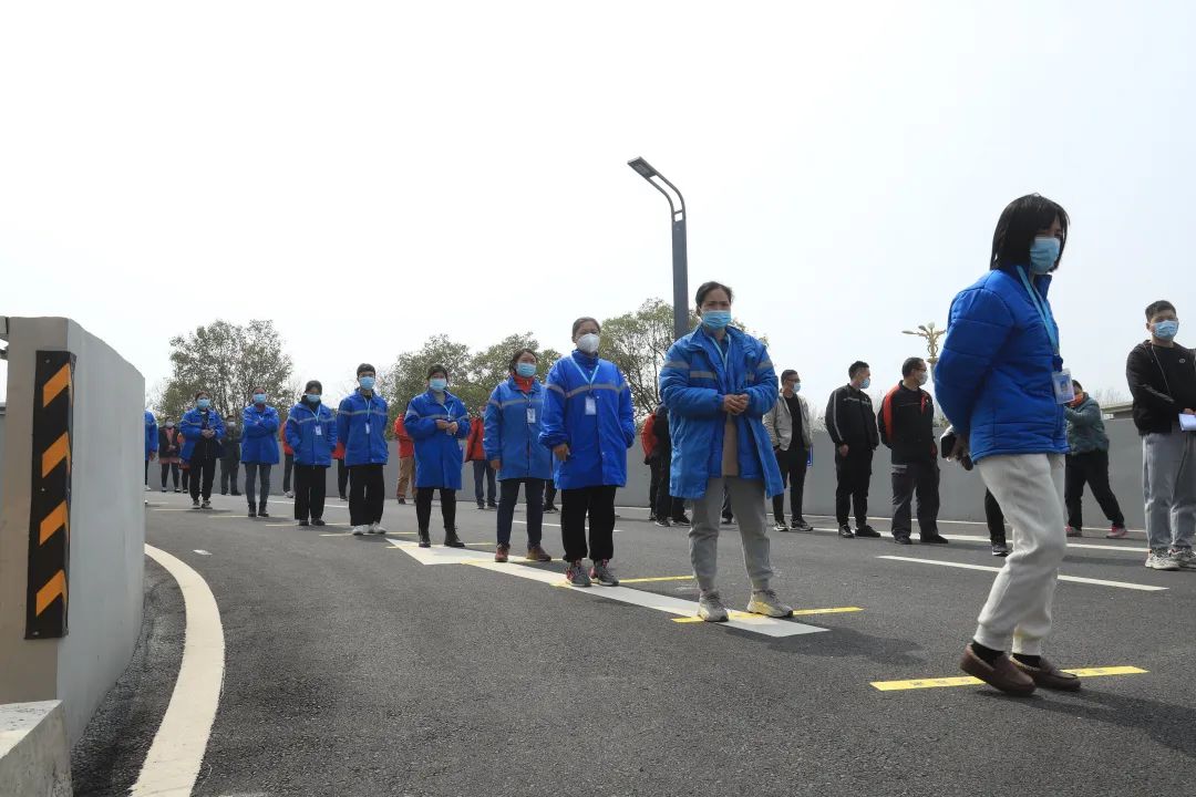 演练内容分为组织动员、现场消毒处置、现场采样、样本转运、实验室收样、样本检测、结果报告等核酸检测全流程。 全员核酸检测演练于下午1点30分准时开始,按照检测计划安排,消杀人员将场地消杀完毕,企业职工进入指定采集点有序进行全员核酸检测。现场工作人员对被检人一一进行体温测量和健康码、行程卡查验,随后在信息台扫描健康码, 完成之后职工进入采样区,采样人员对被检人员开展咽拭子采集。采集完毕后,职工在工作人员指引下有序离场。